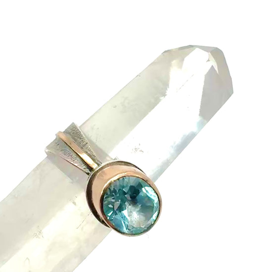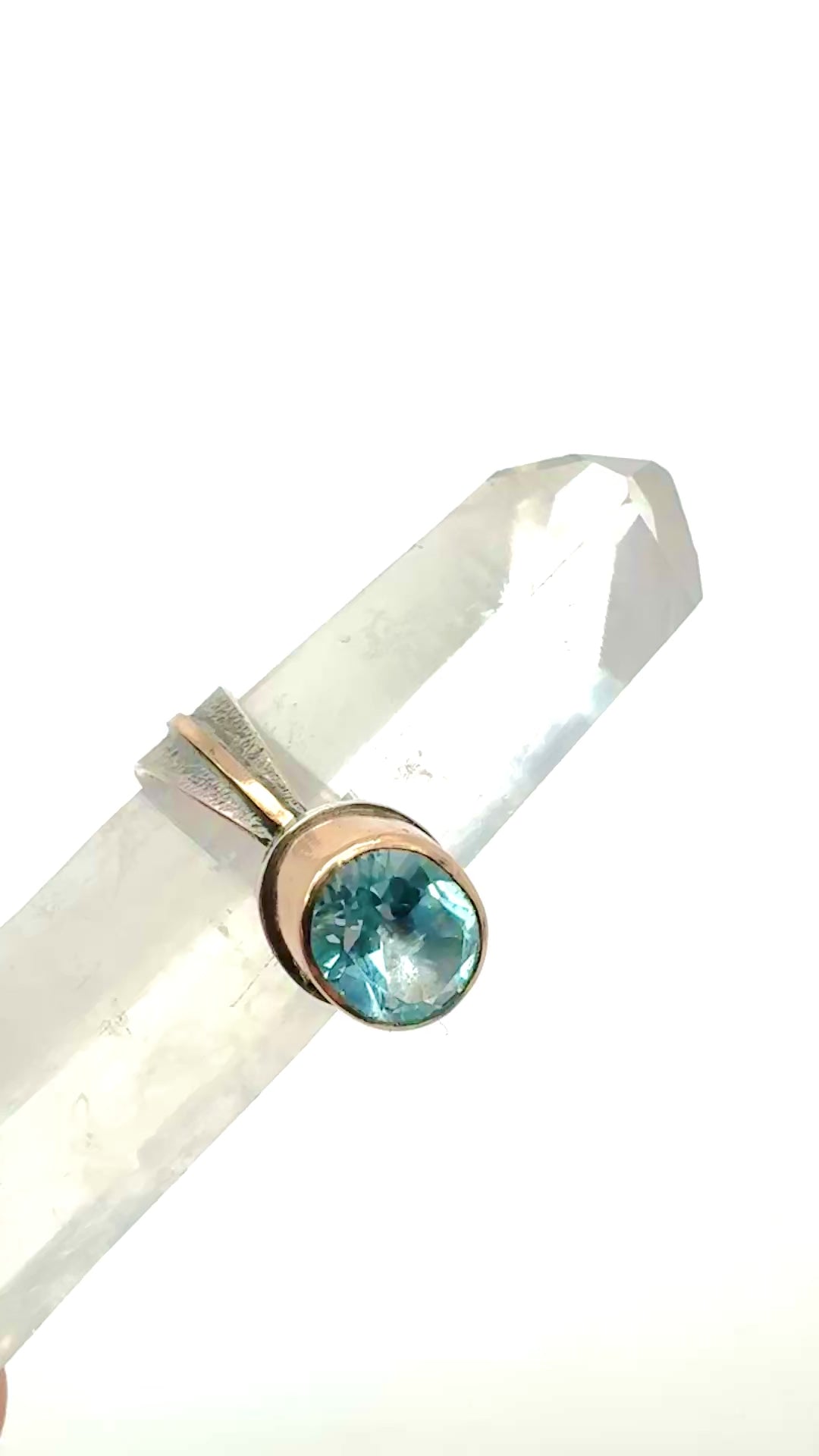 8x12 sky blue topaz set in 14k gold fill on textured and antiqued sterling silver with 14k gold fill applique size 8.5